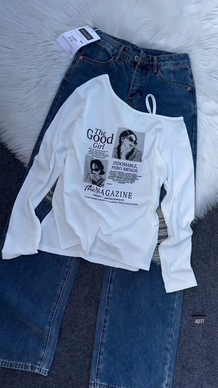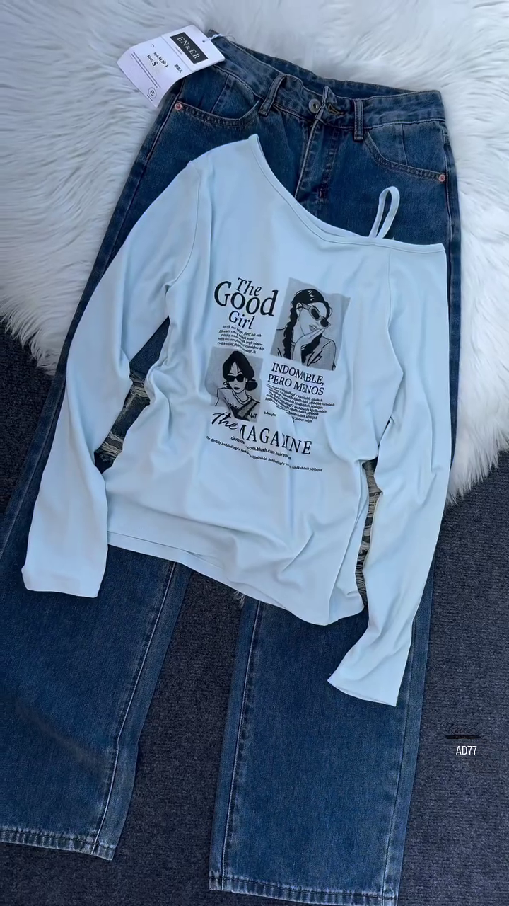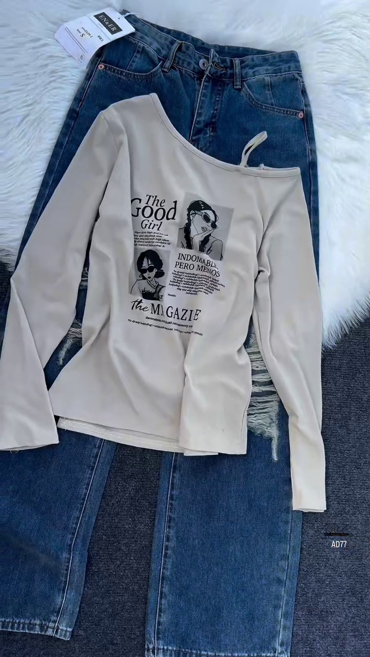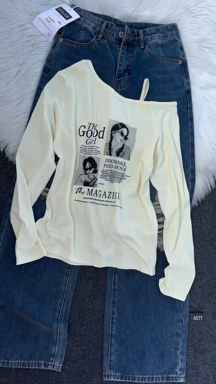Be the first to review “Burgundy Graphic Off-Shoulder Top & Distressed Denim Jeans Set”