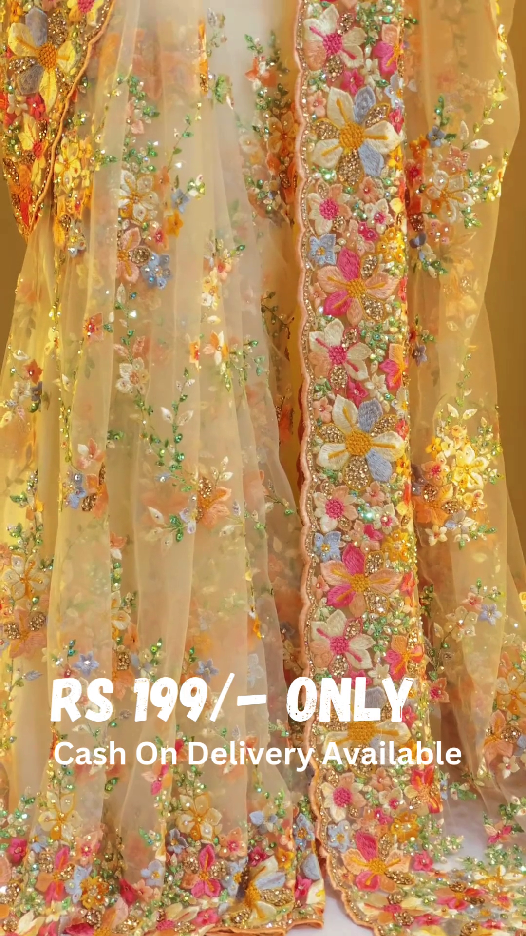Hand-Embroidered Floral Net Saree – 5 Dreamy Shades