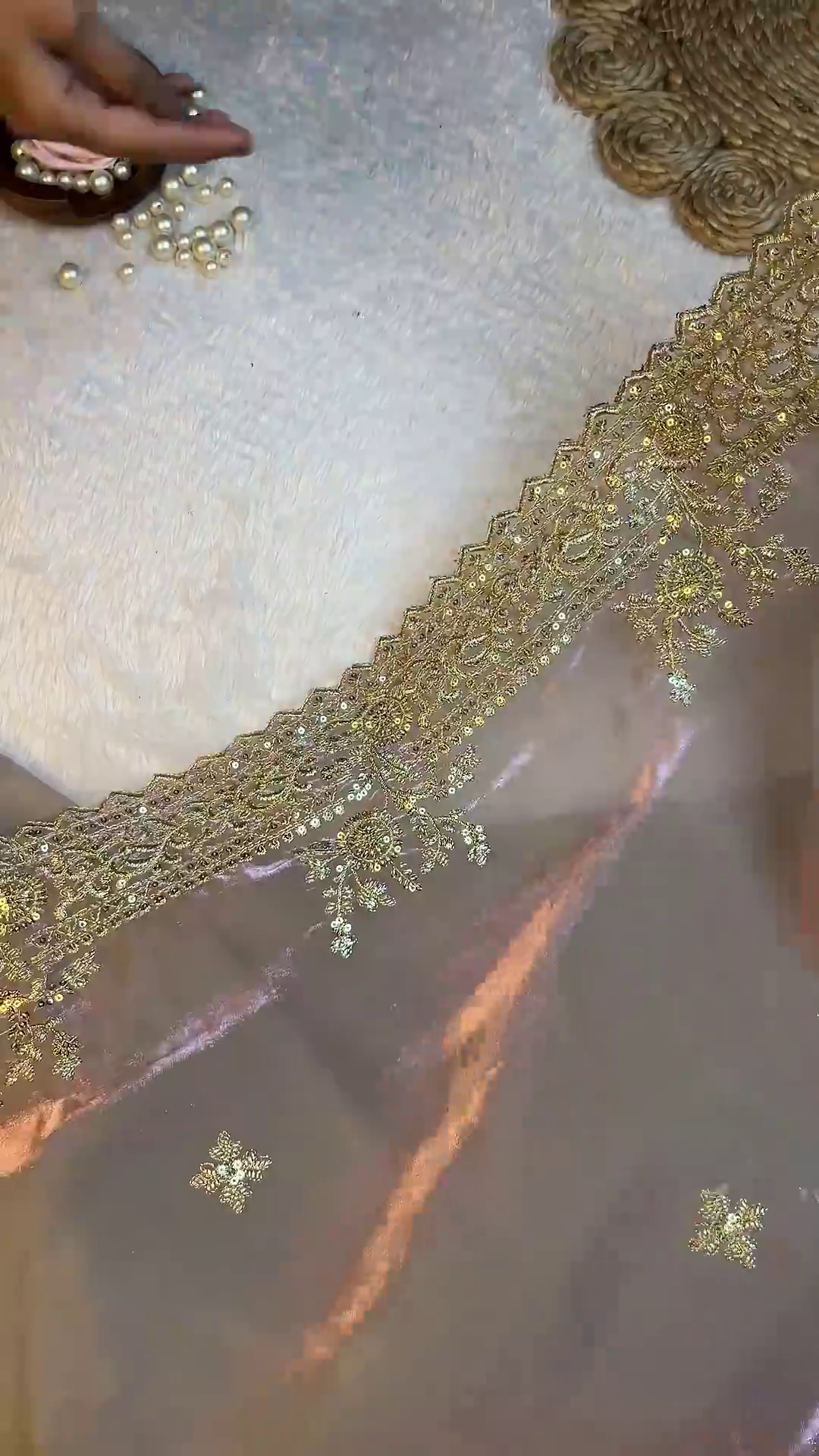 Storage: Store in a soft muslin bag to prevent the golden zari from tarnishing or the sequins from scratching.