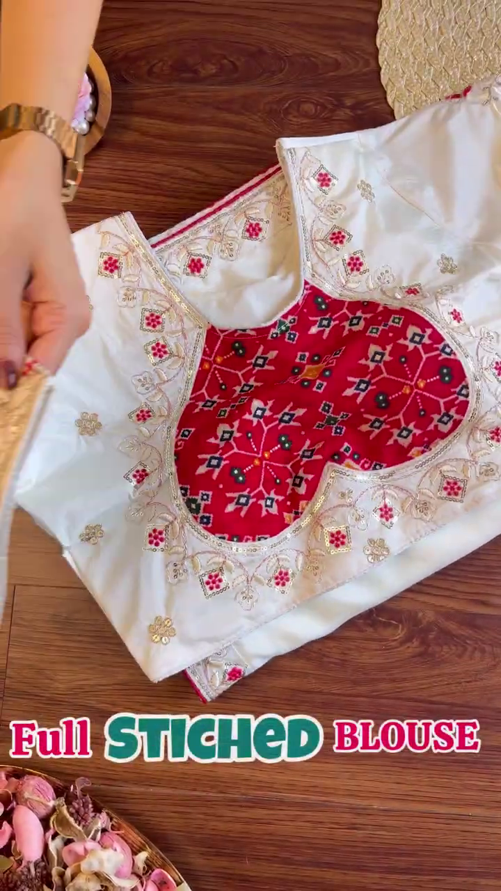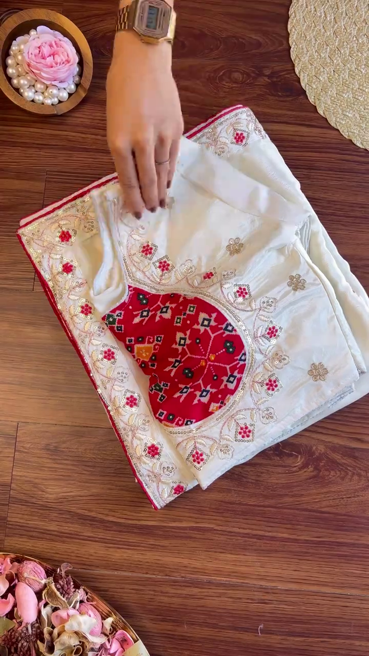 • Dry Clean Only: Essential to maintain the purity of the white fabric and protect the delicate zari and Patola panel.