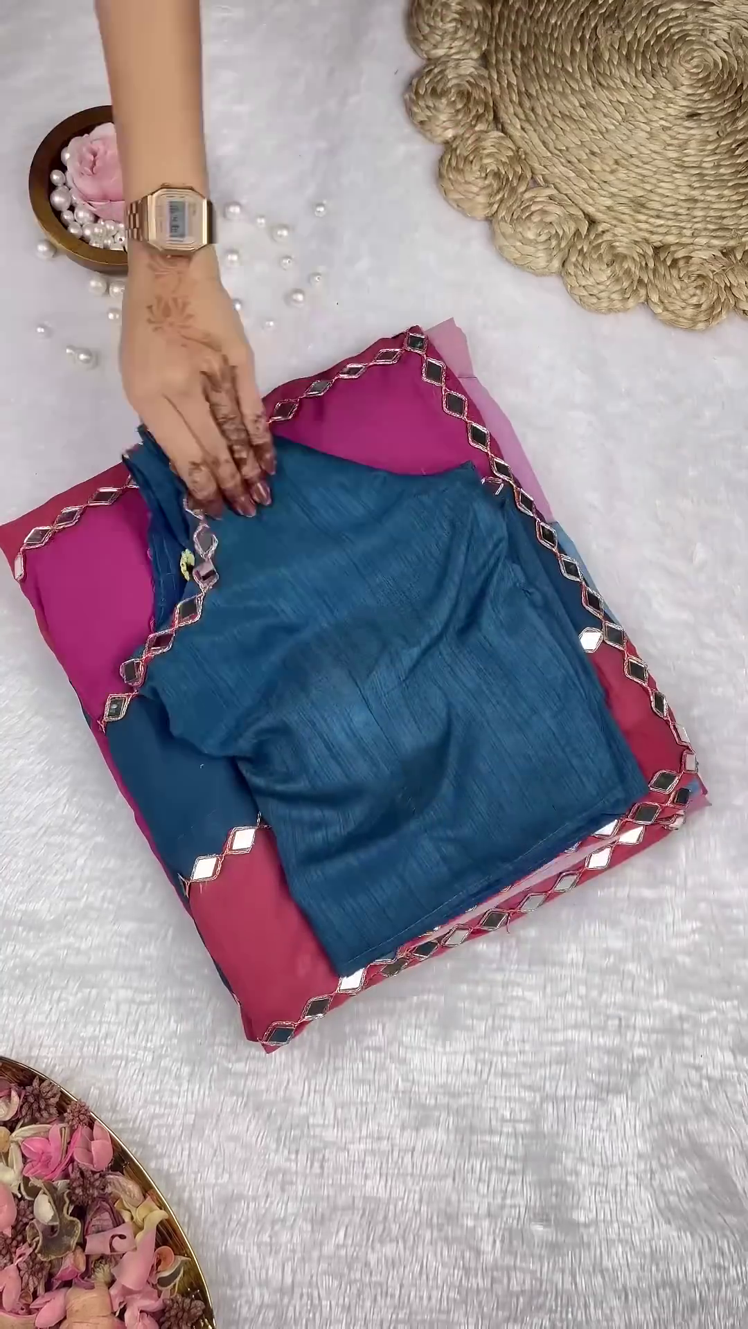 Sleeves: Elegant half-sleeves crafted from the same premium silk-blend fabric for a cohesive look.
