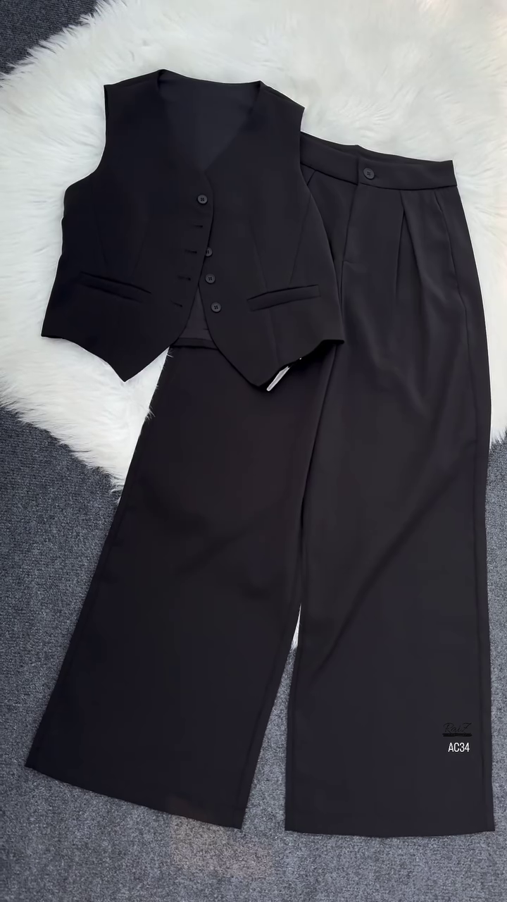 Women’s Black Tailored Vest & Wide-Leg Trouser Co-ord Set