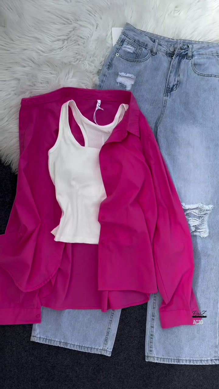 Be the first to review “Women’s Casual Layered Outfit – White Tank, Black Button-Up Shirt & Distressed Light-Wash Jeans”
